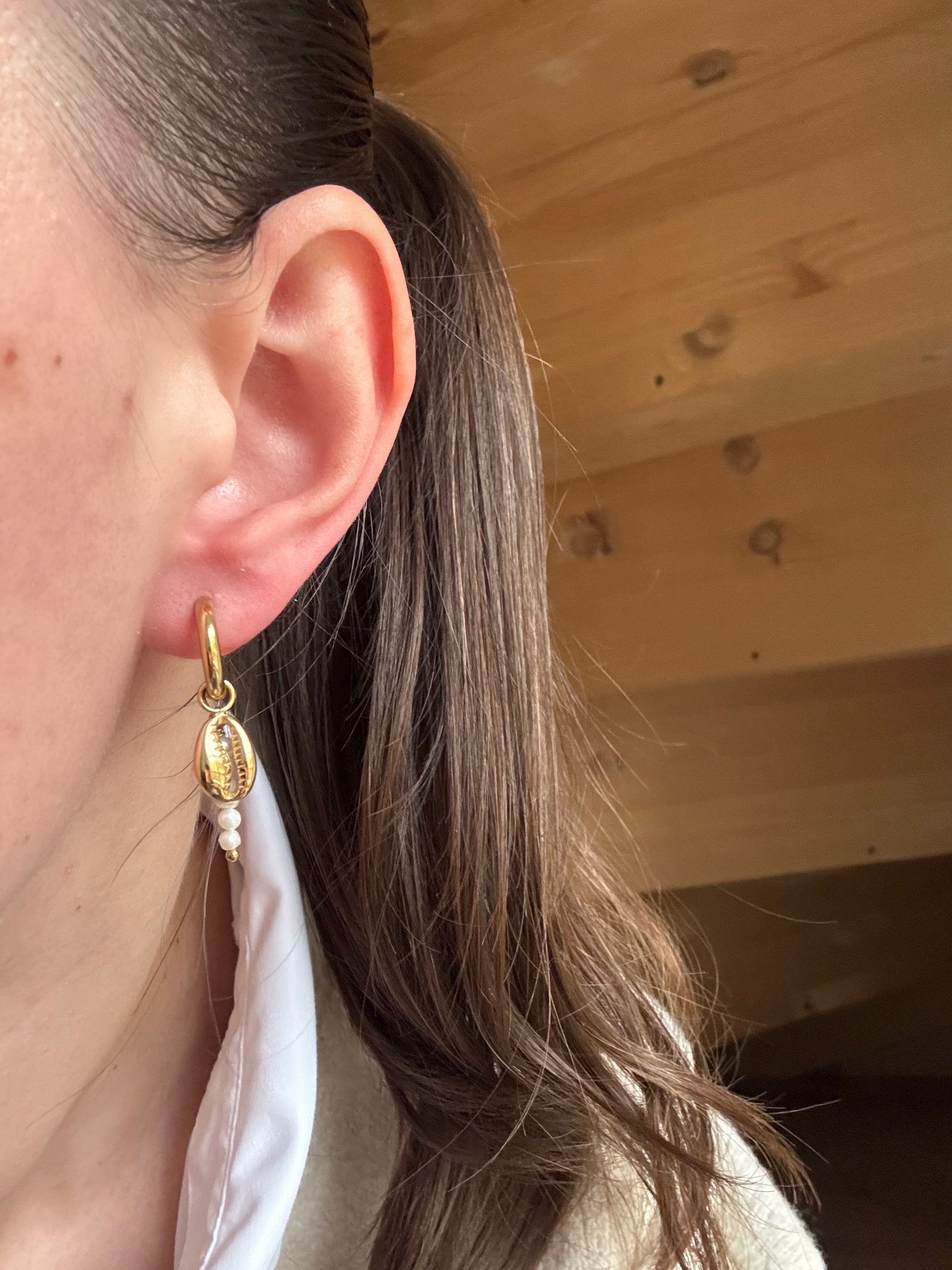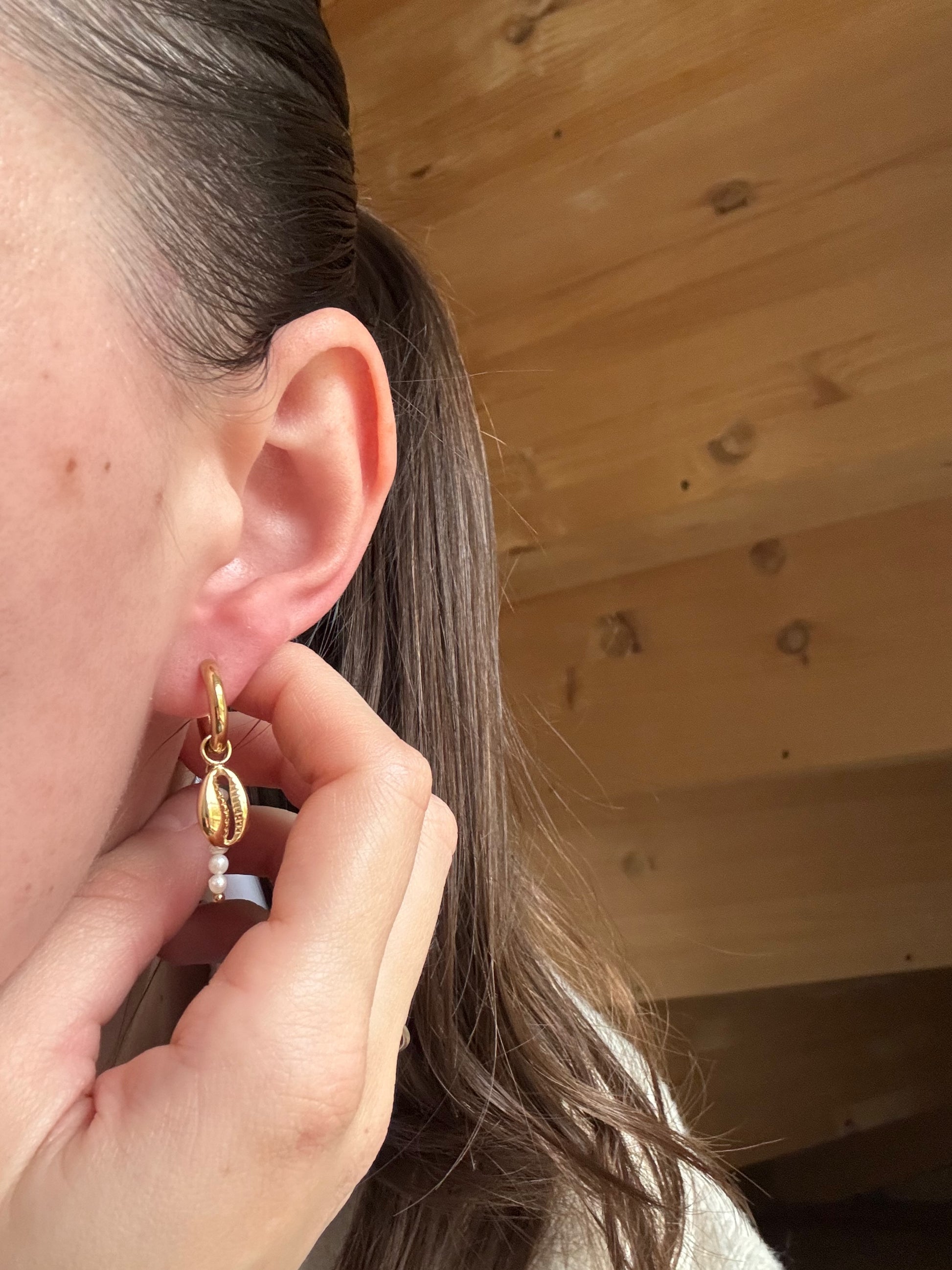 Ces boucles d’oreilles créoles en acier inoxydable s’inspirent de l’univers marin avec leur pendentif cauri, sublimé par une tige de petites perles d’eau douce naturelles. Élégantes et originales, elles associent modernité et authenticité pour un style bohème chic qui ne passe pas inaperçu.